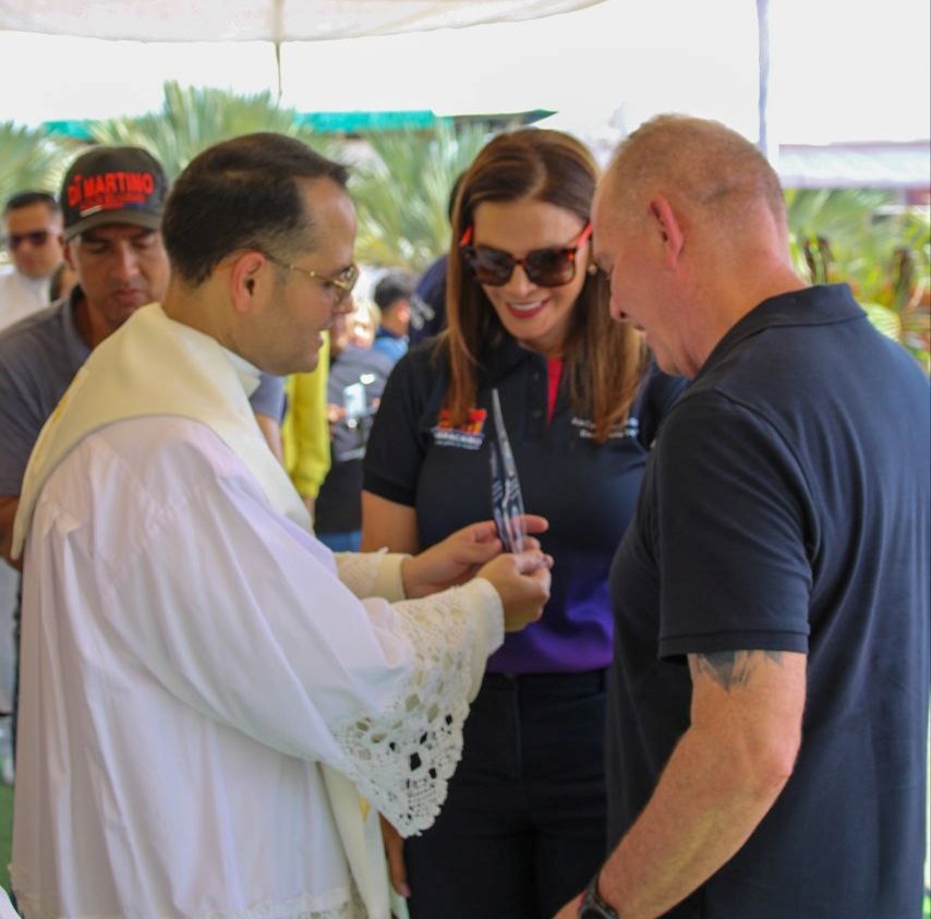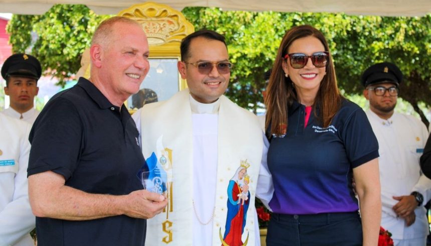 En el evento, el alcalde Giancarlo Di Martino y su esposa, Ana Clara Barboza de Di Martino, recibieron un reconocimiento por parte del presbítero Nedward Andrade, párroco rector de la Basílica de Nuestra Señora de Chiquinquirá.