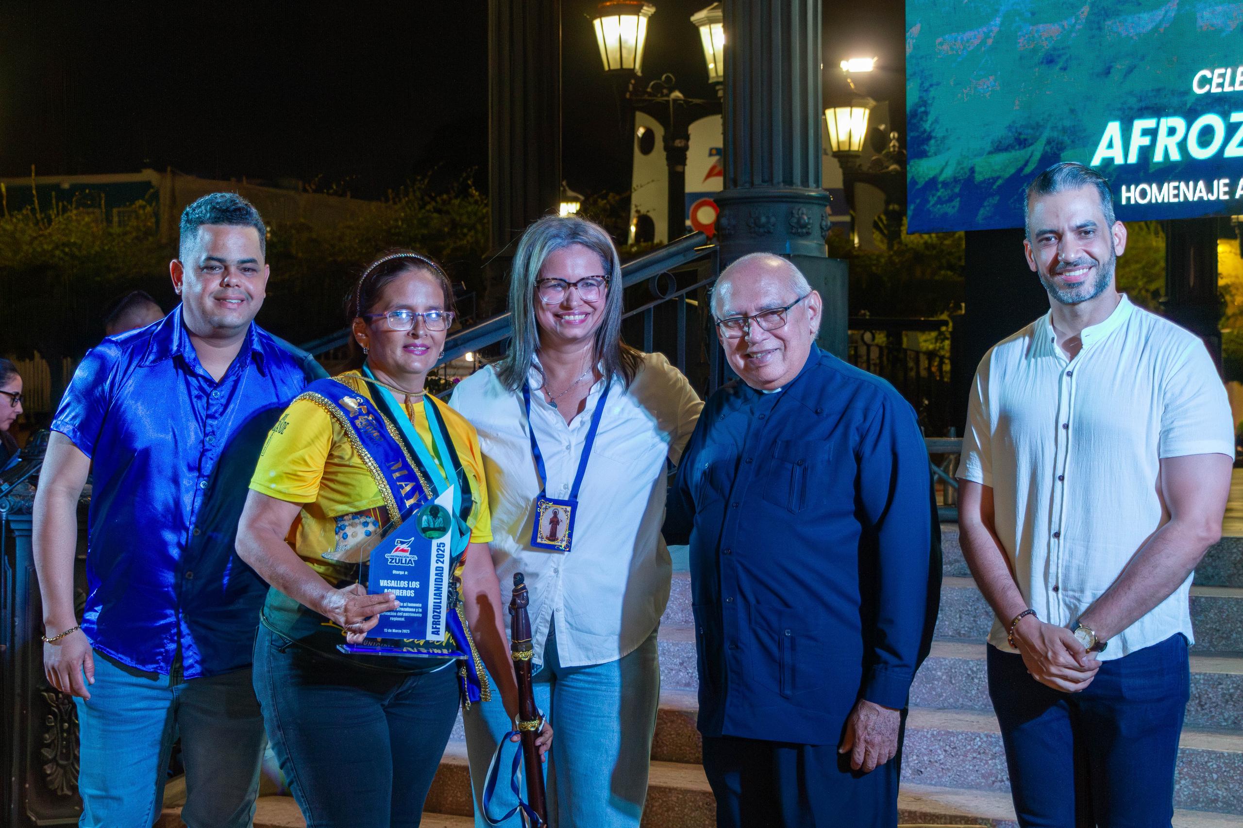 En este marco, se otorgaron reconocimientos a cultores y figuras destacadas que han contribuido a la difusión y preservación de las tradiciones afrozulianas. Entre los homenajeados se encontraban los Vasallos de la Rosa Vieja, de Santa Lucía, La Pastora, Los Acureros, Ramón Ochoa, El Valle, así como la agrupación de música afrovenezolana “Dios en la Calle” y los cultores José “Cheo” Romero, Rafael Chourio, Julio Moreno, y María Chiquinquirá Villalobos.