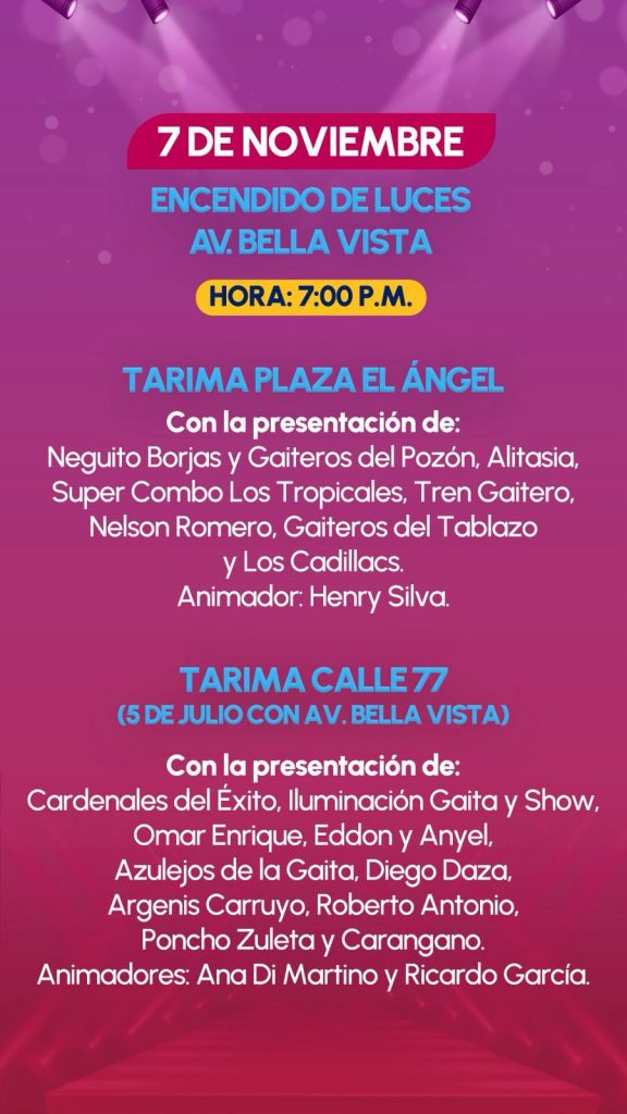 Mañana viernes 7 de noviembre, la icónica avenida Bella Vista volverá a brillar con el esperado Encendido de Navidad, uno de los eventos más esperados de la 59ª Feria Internacional de La Chinita.