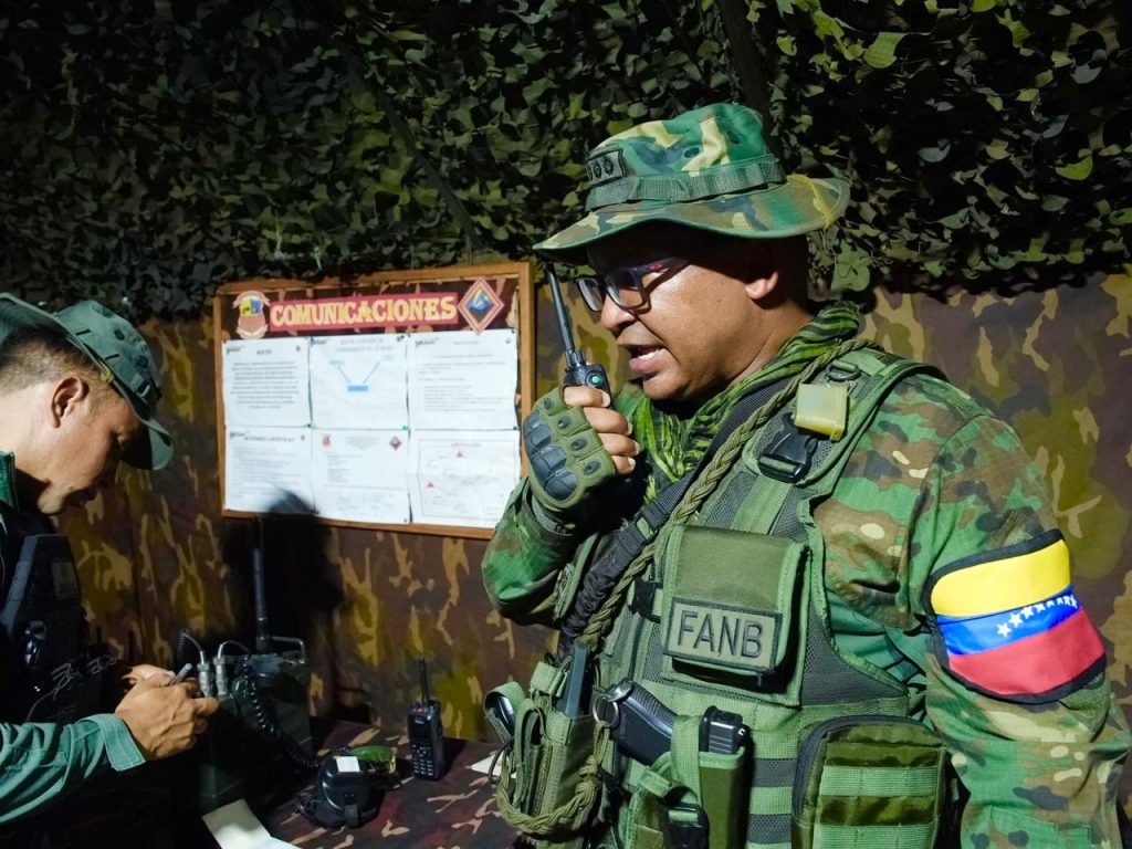 “Militares, los patriotas, hombres y mujeres hemos salido a la defensa de la paz y la soberanía, con organización, disciplina, comando, mando, para que todo esté a la perfección en la defensa a nuestro derecho a existir como nación, a nuestro derecho al libre tránsito, al derecho a la alimentación, a la educación, a la salud, los cuales en momento de agresión y amenaza a la Patria de Bolívar y Chávez, nosotros vamos a garantizar y a defender”, expresó el gobernador Caldera.